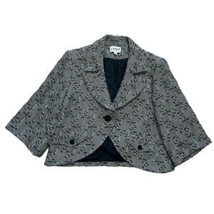 J’ENVIE NEW YORK 100% HERRINGBONE WOOL BLACK WHITE DIAGONAL STRIPE LINED BLAZER + 3/4 Sleeve. Cropped short jacket. Single button closure.