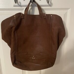 JEROME DREYFUSS Paco Tote Bag Double Handle Purse Brown Kaki Goatskin Leather