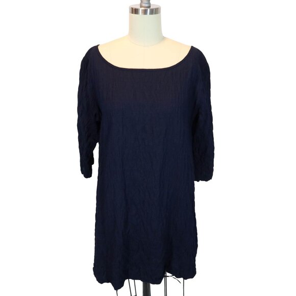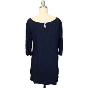 JESS BROWN Textured 3/4 Sleeve Tunic Top Size S Navy Lagenlook Quiet Luxury
