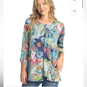 JESS & JANE Marina Sz Med Colorful Fine Knit Contrast Seam Round Neck A Line Top