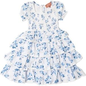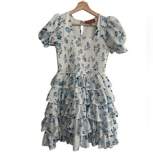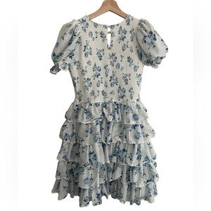 JESSAKAE Smocked Top Tiered Ruffled Floral Blue And White Dress Size Medium