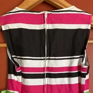 FUN! Darling dress from Jessica Ann! Size 7. Cotton, with a polyester and cotton lining. Sleeveless. Zipper at back. Ties at back waist. Bright, fun colors! Excellent pre-owned condition.