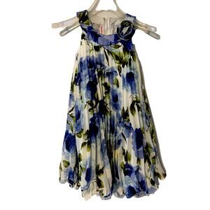 JESSICA ANN Floral Sleeveless Pleated Blue Floral Print A-Line Dress Girls Sz 6