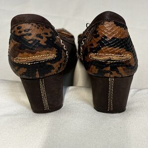 JESSICA BENNETT BROWN Leather WOMEN WEDGES SHOES 8.5 vintage look Leopard Print