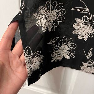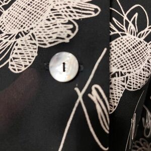 Elegant black shirt with white floral patterns by Jessica Howard.