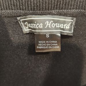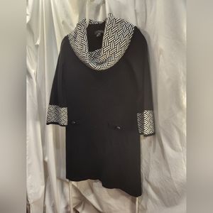 Jessica Howard Black and White pullover sweater dress with cowl neck collar. 3/4 sleeve. Faux front pockets with buttons. Looks great with leggings or Black tights.