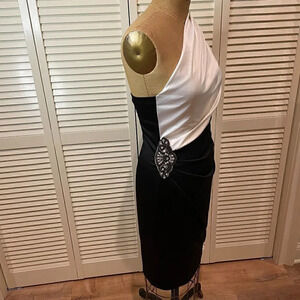 JESSICA HOWARD EVENINGS Mini Dress One Shoulder White/Black Size 10