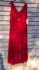 Sleeveless, double v neck with rhinestone embellishment. Fitted top, flowy skirt.