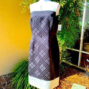 JESSICA HOWARD MISSY COLOR-BLOCK IVORY/BLACK SLEEVELESS SHEATH DRESS 12 NWT