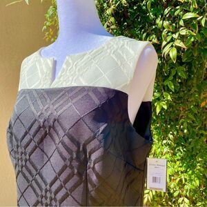 Gorgeous JESSICA HOWARD MISSY COLOR-BLOCK IVORY/BLACK SLEEVELESS TEXTURED SHEATH DRESS