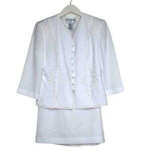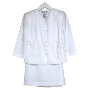 JESSICA HOWARD PETITE WOMEN'S 8 White Skirt Suit Embroidered Church Wedding