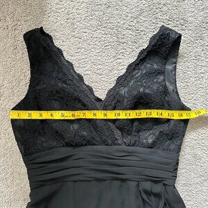 DESCRIPTION: Short Dress. Top is black lace and the bottom is a flowing chiffon. Beautiful dress for any occasion.