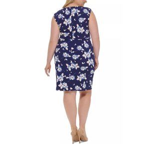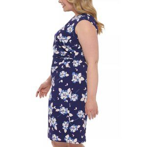 JESSICA HOWARD Plus Size Printed Ruched Sheath Dress Navy 14W