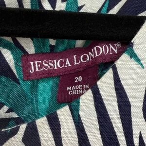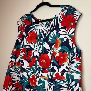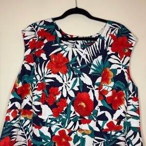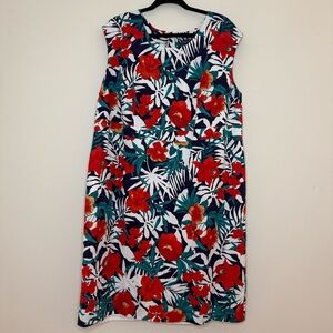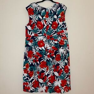 JESSICA LONDON Linen Blend Tropical Beach Red Floral Structured Shift Midi Dress