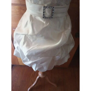 JESSICA McCLINTOCK FOR GUNNE SAX Bubble Dress Sz 5 White Mini Strapless Wedding. Good pre-owned condition. Does have a few stains that are pictured above