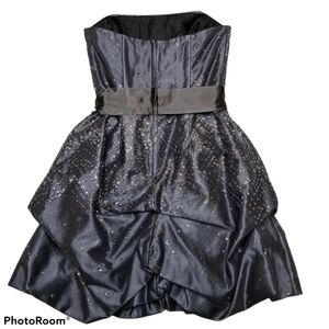Ruched and ruffled strapless Dress! Great for homecoming, prom, weddings, and parties.