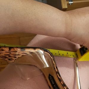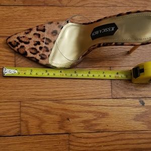 SOLD...**NEW**JESSICA RICH RACY MULE IN A SATIN LEOPARD BASE PRINT WITH A ATTRACTIVE TRANSPARENT OVER LAY TO COMPLIMENT THE FEET. THE LAST TWO PHOTO ARE MEANT TO HELP YOU IMAGINE THEM ON THE FEET.