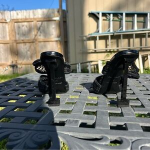 Heel height: 100 mm- Custom Molded "RICH" Stiletto Heel- Pointed Mesh Toe- Monochromatic Patent Leather Lining