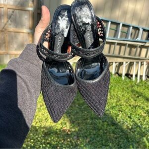 JESSICA RICH Ysabelle Stiletto Fishnet Pointed Toe Pump in Black Size 39 (8.5-9 us)