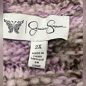 JESSICA SIMPSON Aamina Purple Knit Cardigan with Fringe, PLUS SIZE 2X