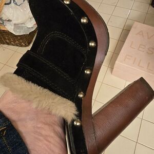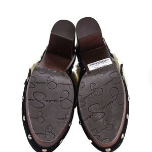 JESSICA SIMPSON BLACK SUEDE FUR TRIMMED MULES