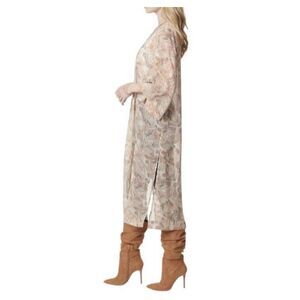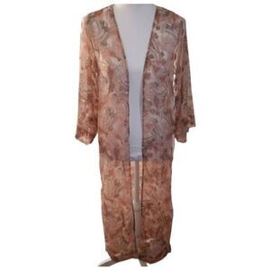 JESSICA SIMPSON BLAKELY WILD PAISLY GARDENIA CREAM & CORAL CARDIGAN DUSTER KIMO