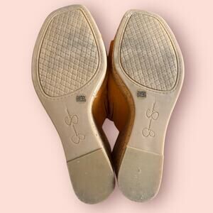 JESSICA SIMPSON Cork WEDGE OPEN TOE HIGH HEELS MULES Sz 6 Platform Burnt Orange