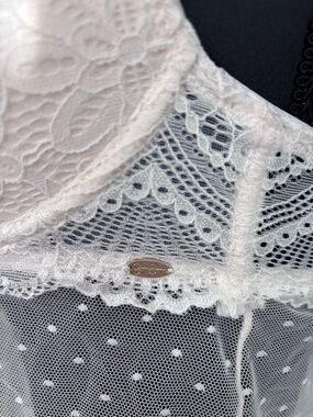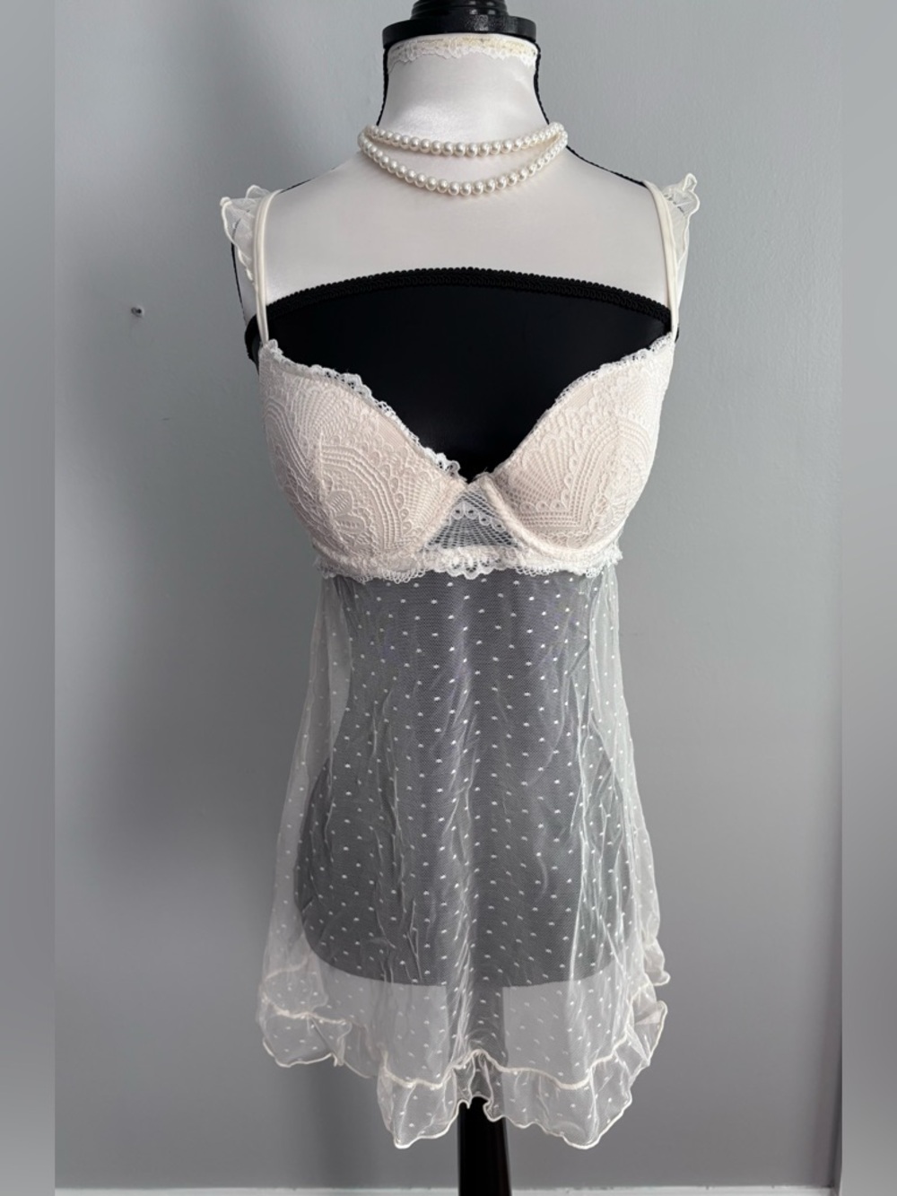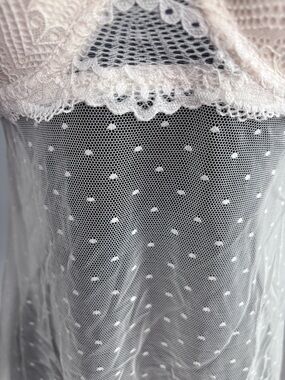 Beautiful details. Adjustable straps. Ruffle on straps. Polka Dots on gown section of gown.
