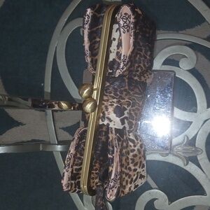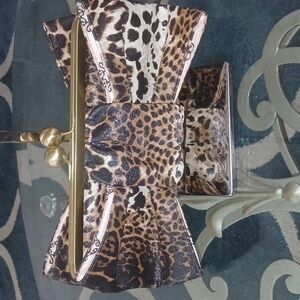 JESSICA SIMPSON Leopard Print Clutch w/Kiss Lock Wristlet, EUC