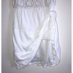JESSICA SIMPSON Solid White Mini Sun Dress - Crochet upper front; Ruched Stretch Smocking upper back; Fit In very good condition and is Fresh & Clean and Ready-to-Wear - Has been laundered in Ecos non-scented soap and hung dry just prior to listing. Size M - Bust-34" / Length-37"