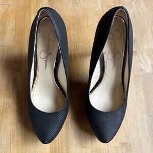 JESSICA SIMPSON Parisah Matte Black Snake Platform Boho Pump Stilettos Size 8M