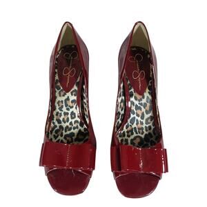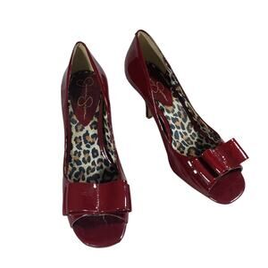 From Jessica Simpson are these beautiful rich ruby red patent leather heels, pumps! With a bow front and PEEP-TOE, the "Kendale" model! Super shiny and cute! 3" heel, Size 8B, worn once! Excellent! Superb EUC Condition! **ABSOLUTELY GUARANTEED CONDITION: EUC MINTY-EXCELLENT TO LIKE-NEW, by Lily @HauteClub!***