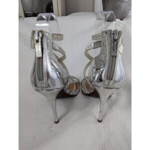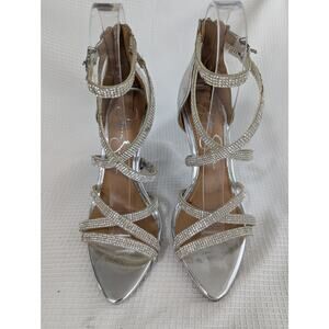 JESSICA SIMPSON! SILVER RHINESTONE CRISS-CROSS STRAPPY ZIP BACK HEELS! SZ 6M