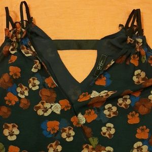 NWOT Jessica Simpson floral top with adjustable straps 4 botyons closure at side close to hem. Size M.