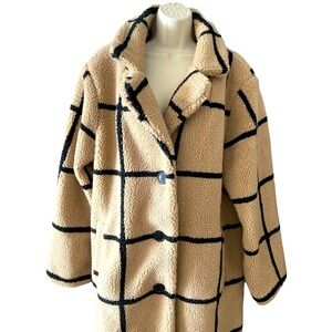 JESSICA SIMPSON Tan Black Windowpane Teddy Coat Long Jacket Women’s Size 1X EUC