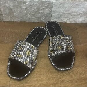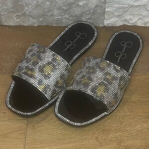 NWT Jessica Simpson Kassie slide. Glam up your casual look with these flashy leopard print slides.