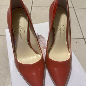 Jessica Simpson Cassani Red Muse Patent pointed toe stilettos size 7.5M Patent leather pumps. 4.5” heel. Good condition, see the photos small tear on the inside of the pumps does not affect them at all- only worn once!