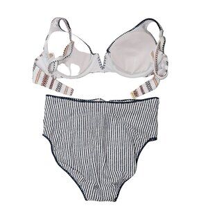 JESSICA SIMPSON Women's Swimsuit Multi Geometric Bikini Top Size L Bottom Size L