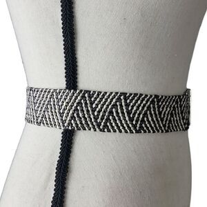 JESSICA Simpson Black & White Coated Straw Silver Buckle Stretch Belt Size 6