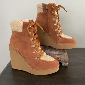 JESSICA Simpson Maelyn Lace-Up Suede Sherpa Platform Wedge Hiker Boots 6.5