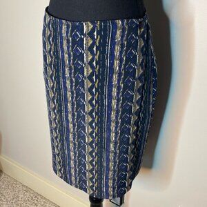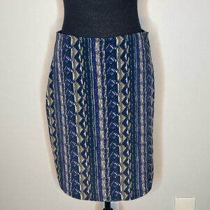 JESSICA Womens Wrap Skirt Pencil Skirt Blue Tan Aztec