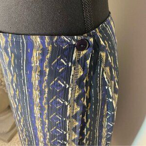 Light and flowy material that doesnt wrinkle. Blue, brown and white Aztec design in this simple wrap skirt.