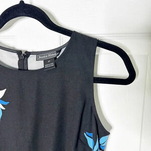 JESSICA HOWARD Size 4 Petite Black Sleeveless Blue Floral Dress