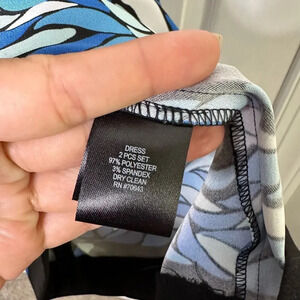 Sleeveless crew neck dress with blue floral print. Invisible back zip closure, unlined.