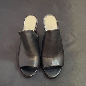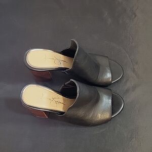 JESSICA SIMPSON PEEP TOE BLOCK HEEL SLIDE MULE SANDAL SIZE 7M/37 COLOR BLACK MADE WITH LEATHER UPPER MAN MADE LINING SOLE HEEL HEIGHT MEASUREMENTS 3".50 INCHES (8.89CM) THIS ITEMS IS PRE-OWNED EXCELLENT CONDITION WITH ONLY LIGHT SIGNS OF WEAR IF ANY CHECK THE PICTURES