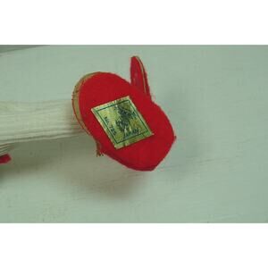 VINTAGE JESTIA T.K.R. FABRIC SLEEPY CHILD WITH STOCKING FIGURINE--#725--MADE IN JAPAN & TINY UNBRANDED FABRIC ELF WITH BENDABLE LEGS