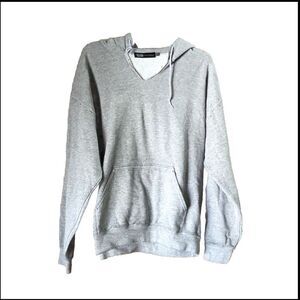 JET John Eshaya V-Neck Heather Rhinestone Detail Pullover Hoodie Gray - M/L
