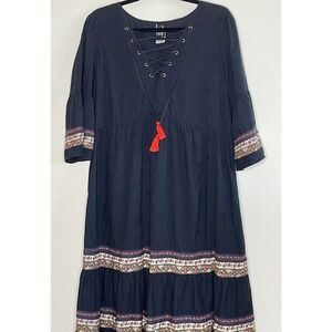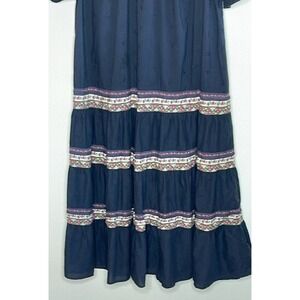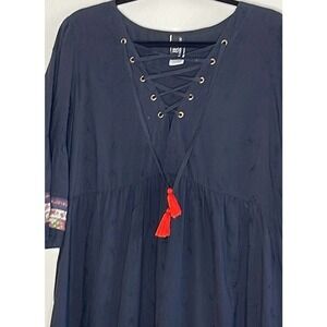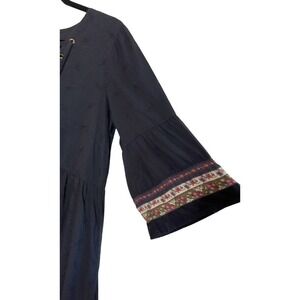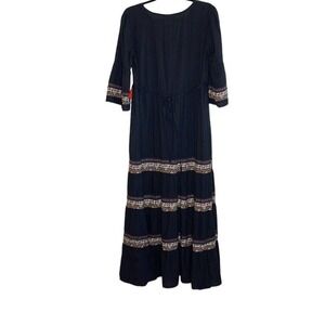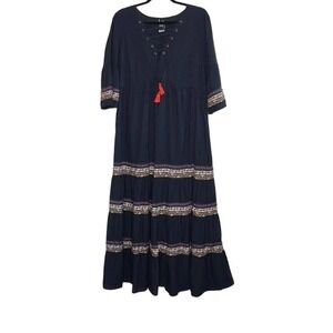 JETS AUSTRALIA BY JESSIKA ALLEN SENSORY MAXI DRESS SIZE US 8 . V-neckline, lace-up tassel tie, gathered panels with banded ribbon detail, 3/4 bell sleeves, scattered leaf embroidery throughout , 100% cotton. Excellent condition. Measurements: pit to pit 20", full length 53".