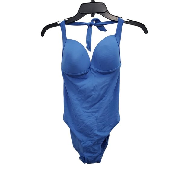 JETS by Jessika Allen Women's Blue Basic Halter Neck One Piece Bathing Suit US 8