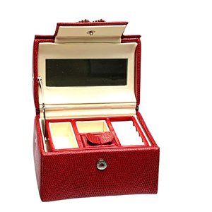 JEUN BANG Embossed Faux Leather Rhinestone Heart Accents Travel Jewelry Box